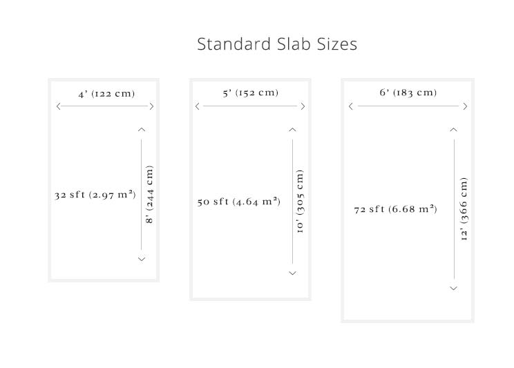 8' (244cm) x 4' (122cm), 10' (305cm) x 5' (152cm),